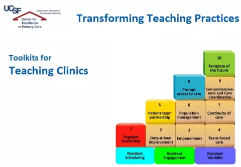 | Toolkits and Resources for Primary Care Teaching Clinics CEPC is developing to a series of toolkits to guide primary care teaching clinics with implementing the Building Blocks of Primary Care. For additional resources including resident curricula and faculty development materials, please visit: https://fcm.ucsf.edu/practice-transformation |